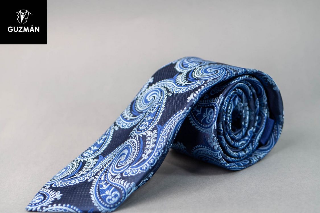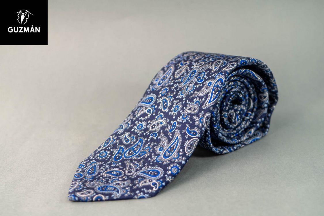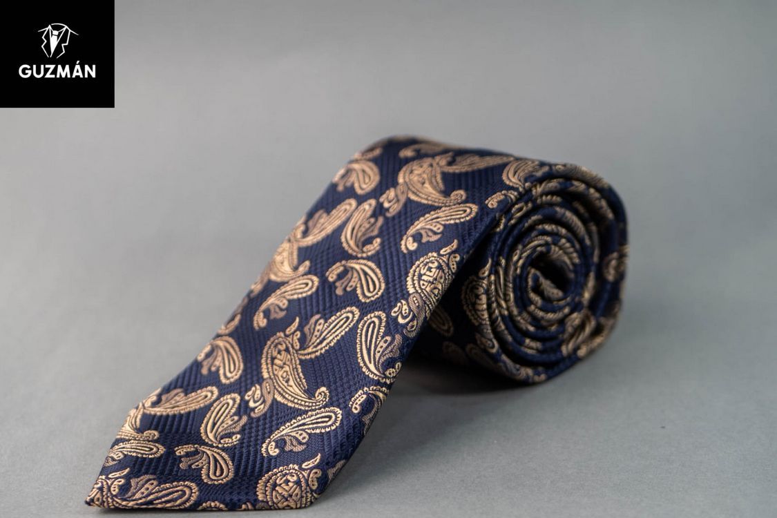 CORBATA AZUL MARINO PAISLEY FALSO LISO