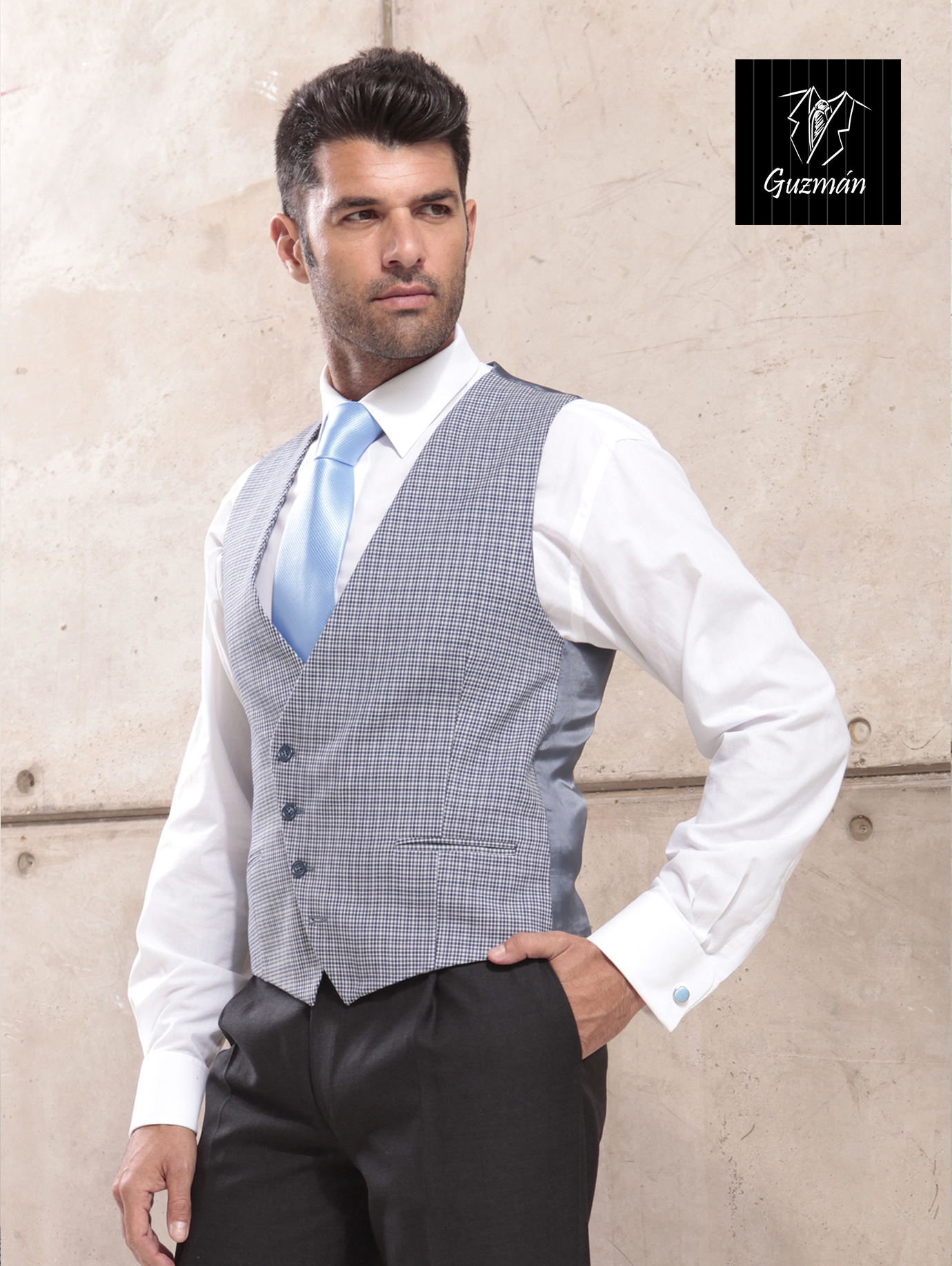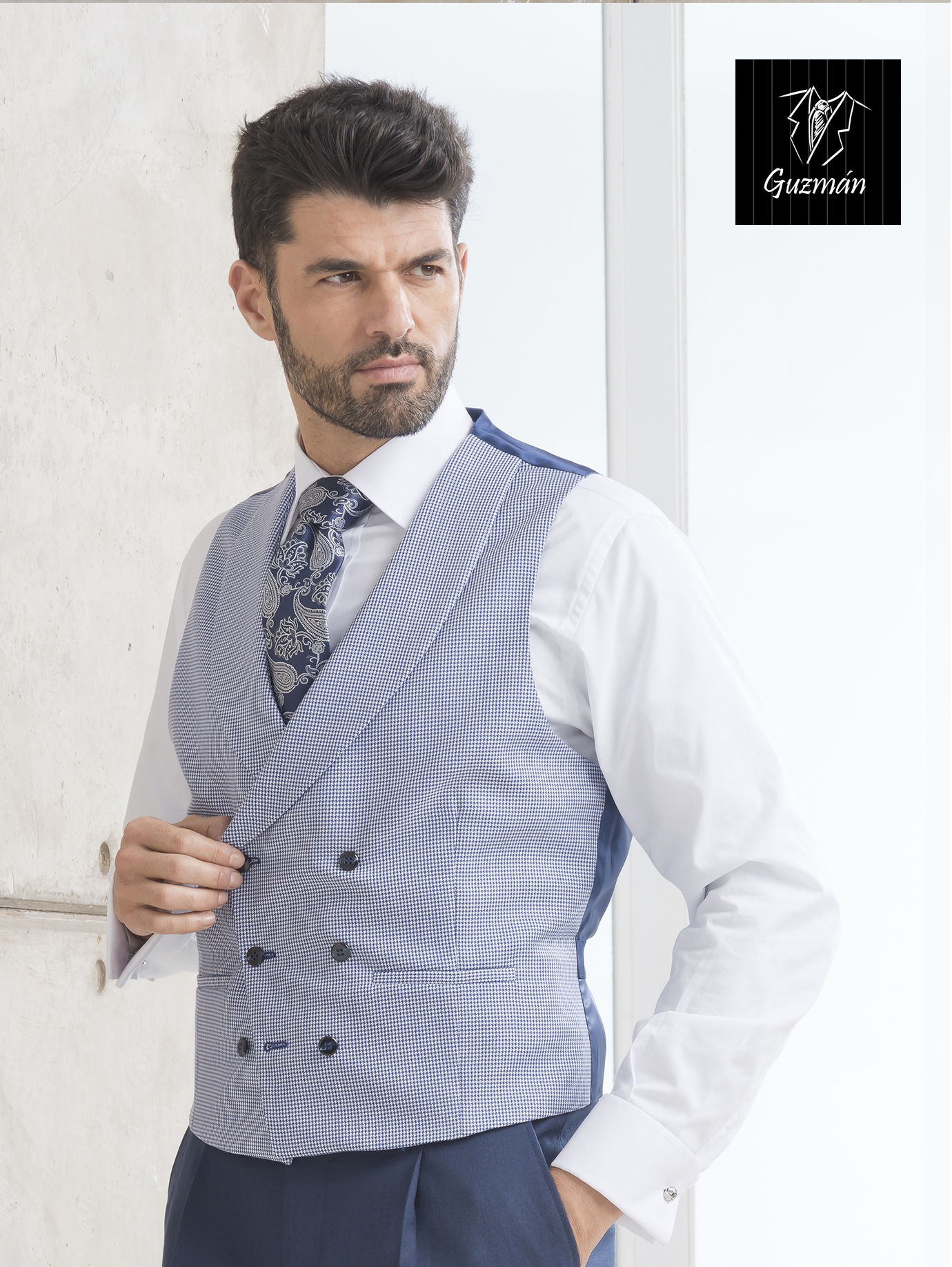 Ya disponíamos en nuestra colección chalecos como el mini cuadros, el escocés o el mil rayas en celestes. Ahora también ofrecemos el escocés azul marino y el escocés rojo, el Príncipe de Gales azul marino, el pata de gallo azul marino y el mil rayas rosas. Todos ellos son chalecos cruzados con o sin solapas según modelo, estando mucho más de moda que los clásicos chalecos rectos o cruzados lisos que comentábamos antes, dando un toque de modernidad y distinción a cualquier tipo o estilo de chaqué. Como habréis visto, tenemos una amplia y elegante selección de chalecos en alquiler y venta. Todo un abanico de posibilidades realmente elegantes y actuales, y que están teniendo un recibimiento por parte de nuestros clientes muy positivo.