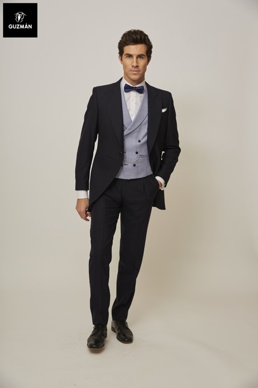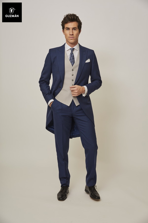 Para ellos, el azul es el color más solicitado este 2022. Un chaqué azul tinta es elegante, moderno y está muy de moda esta temporada. El chaleco debe ir en un tono más apagado, como el gris, y la corbata paisley con topos azules. Elegancia y atrevimiento en uno, ¿quién dijo que el novio no debe ser también el centro de atención?