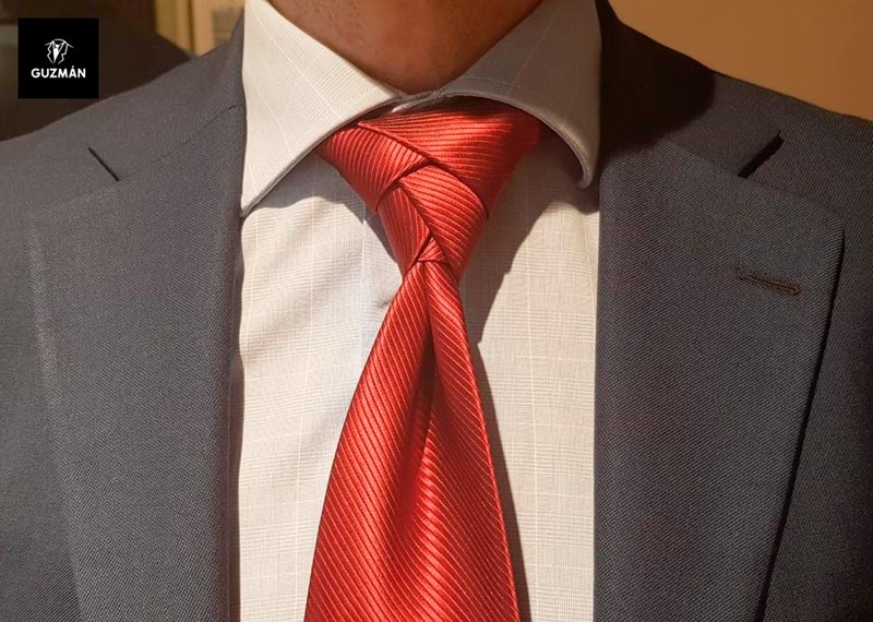 Siguiendo con los nudos distinguidos, tenemos este otro que se parece al nudo clásico pero con una diferencia significativa. Este nudo incluye una vuelta más al enrollarlo, ofreciendo un aspecto más engrosado. Si te gusta este estilo, te recomendamos que tu corbata sea delgada. Va perfecto con camisas de cuello largo y es ideal para hombres que no son muy altos.