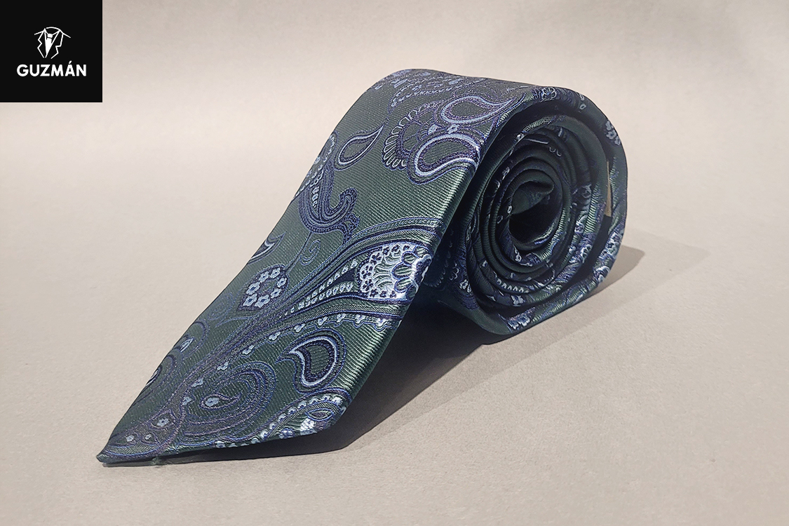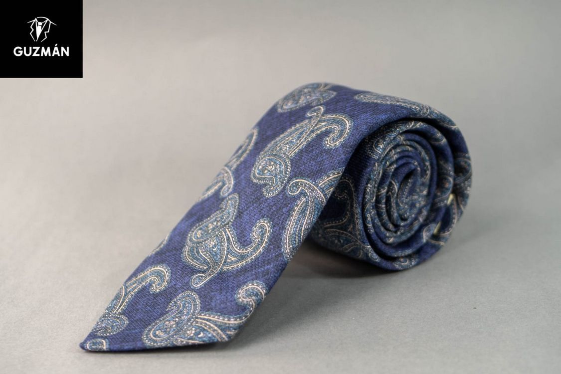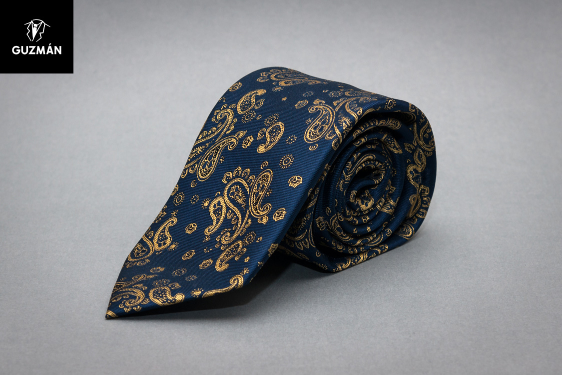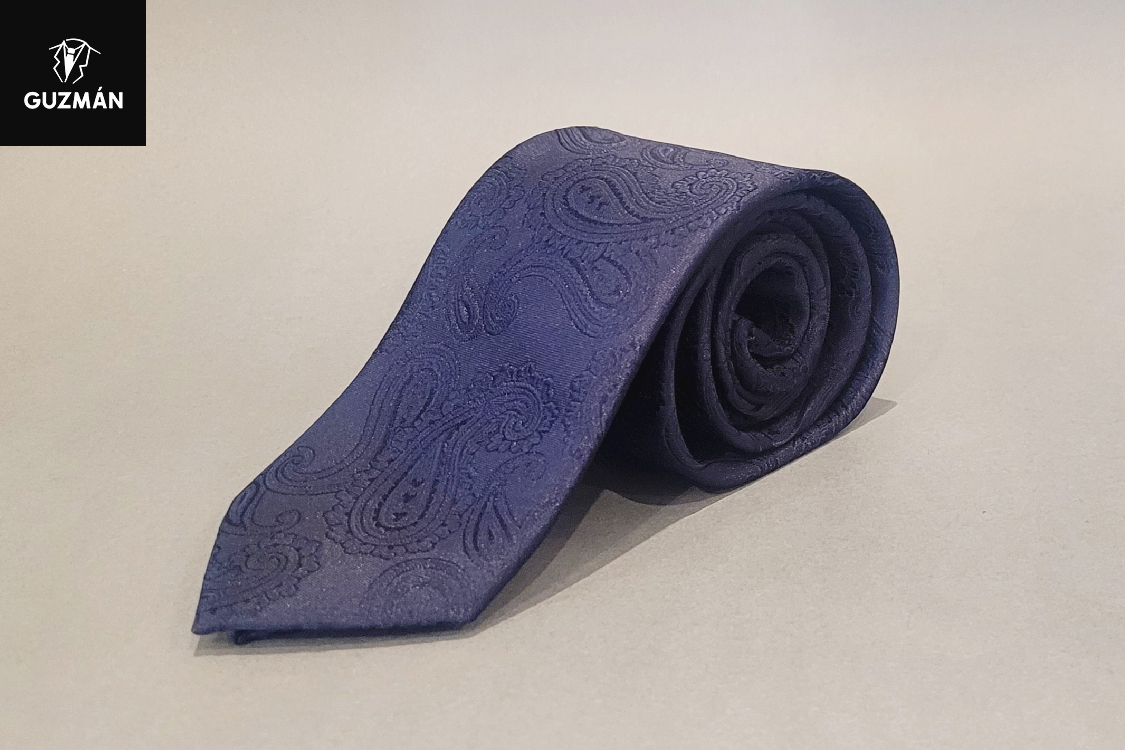 CORBATA AZUL MARINO PAISLEY FALSO LISO