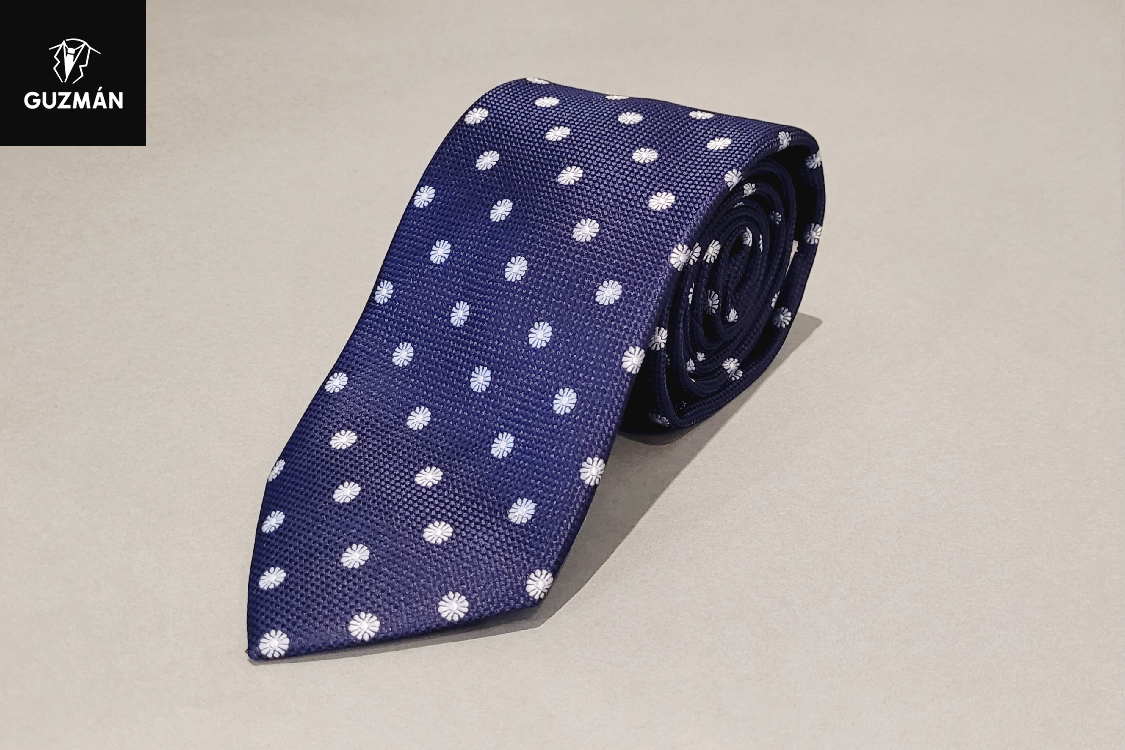 CORBATA AZUL MARINO TOPOS DISPERSOS